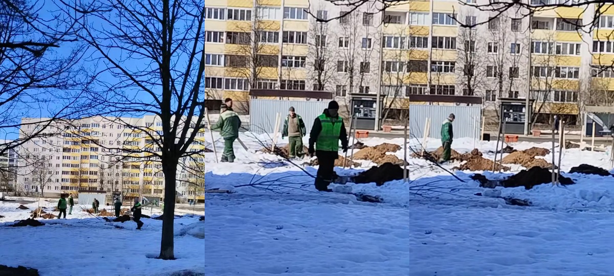 У Мінску ў сацсетках абмяркоўваюць відэа, на якім камунальнікі высаджваюць дрэвы ў яшчэ мёрзлую зямлю. Ролік апублікавала жыхарка сталіцы ў TikTok.