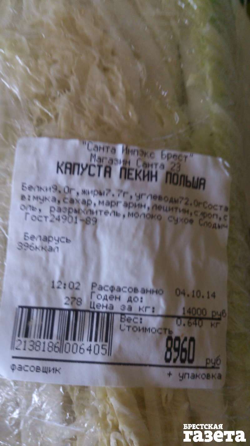 Покупателям то и дело напоминают: внимательно читайте, из чего состоит продукт, что написано на этикетке. Ну вот мы и прочитали… Никогда бы не подумали, что в составе пекинской капусты содержатся мука, сахар, маргарин, лецитин, сироп, соль, разрыхлитель и сухое молоко. Кто после этого скажет, что капуста — это диетический продукт? Да тут в 100 граммах почти 400 килокалорий!