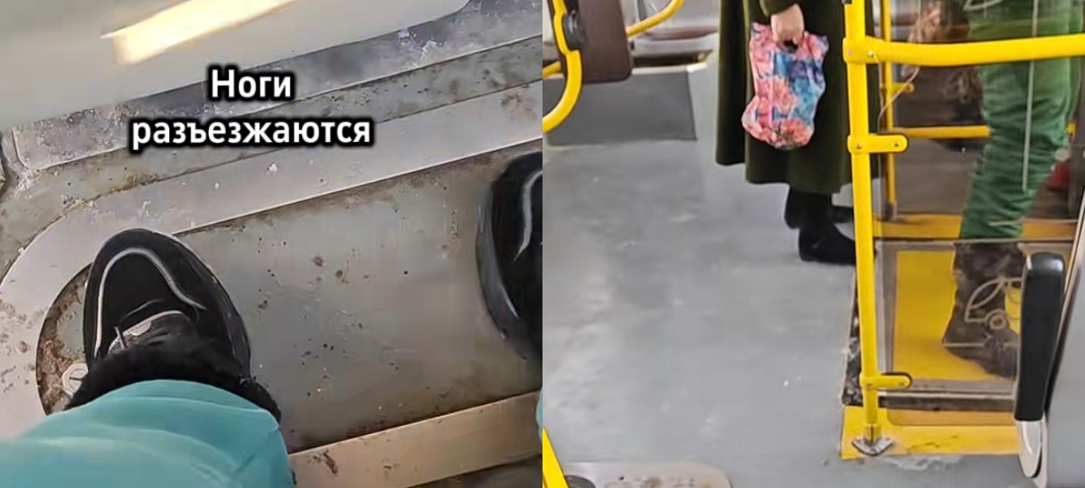 Мінчанка паказала ў відэа, як падлогавае пакрыццё ў аўтобусах стварае небяспеку для простых людзей. Такую ж праблему заўважылі і ў іншых гарадах.