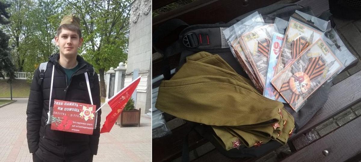 Перед самым Днем Победы на улицах Минска и Бреста появились молодые люди, продающие георгиевские ленточки и пилотки по образцу красноармейских, времен войны. 8 мая «Наша Ніва» написала о брестской молодежи, которая «делает деньги на чувствах российских туристов», а журналисты Еврорадио в тот же день сфотографировали парня с ленточками, флажками и пилотками «по 10 рублей» в минском парке Горького. Оказалось, продавцы связаны между собой, пишет Еврорадио.