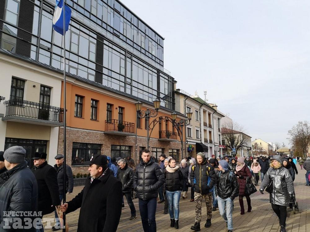 После кормления голубей противники завода по традиции прошли по улицам Пушкинской и Советской к кинотеатру «Беларусь».