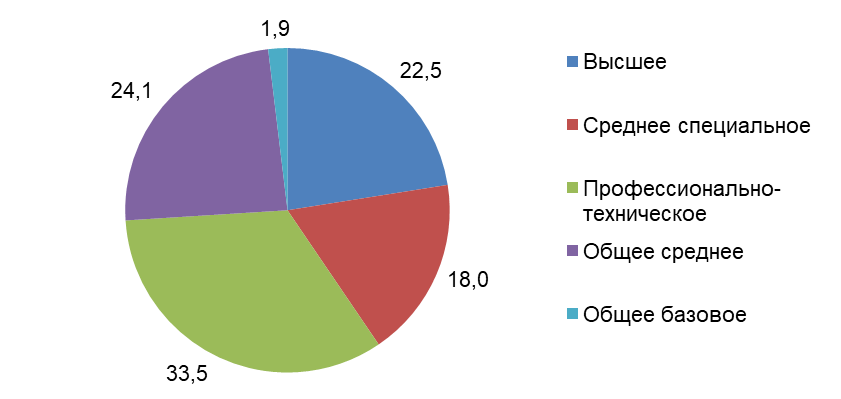 По данным статистического комитета, в 2018 году в строительстве трудилось 276,2 тыс. человек (6,4% всех занятых в экономике республики). В организациях строительства – 74% рабочих и 26% служащих. Каждый четвертый работник этой отрасли (20,5%) – в возрасте до 31 года. Практически у каждого третьего – профессионально-техническое образование. Однако есть работники, которые закончили только школу – 1,9%.