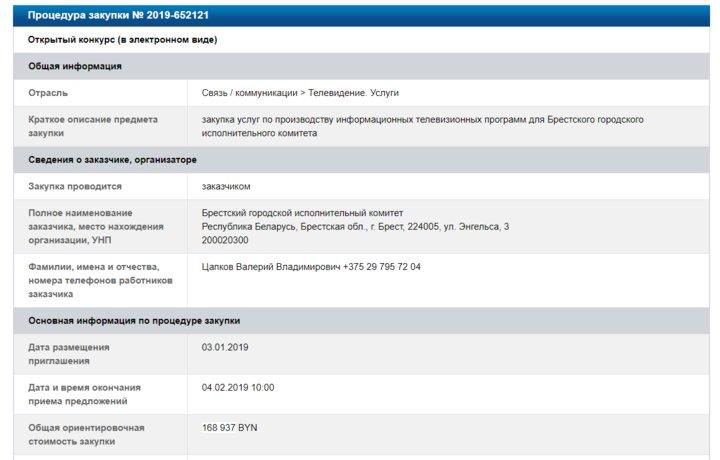 «Это открытый конкурс, в котором могут участвовать все желающие, — поясняет начальник отдела идеологической работы и по делам молодежи Брестского горисполкома Геннадий Иванчин. — Вот у нас в прошлом году компания БУГ-ТВ выиграла конкурс и готовила новостные телепередачи о городской жизни. Это обычная практика во всех регионах. Программы закупаются на весь год, поэтому сумма не должна пугать. Стоимость просчитана и обоснована. Над передачами будет работать не один человек, а целый коллектив: съемочная группа, редакторы. Это достаточно трудоемкий процесс, который связан с деятельностью не одного человека в течение года».