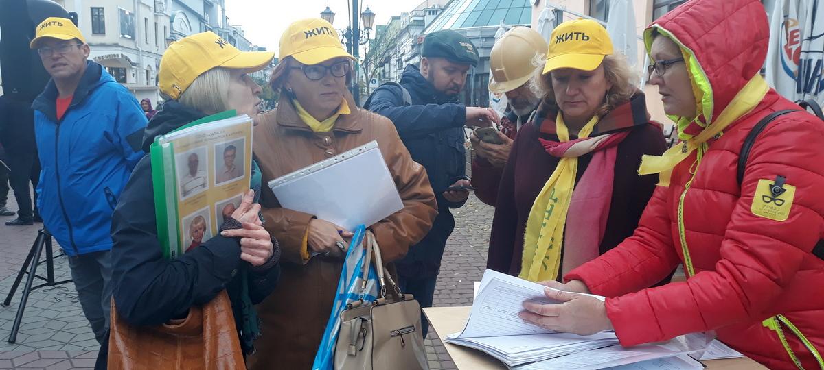 С 18 сентября сбор подписей в Бресте и районе начали инициативные группы активистов борьбы со строительством под Брестом аккумуляторного завода. Их легко узнать по желтым бейсболкам со словом «ЖИТЬ», желтым шарфам и майкам.