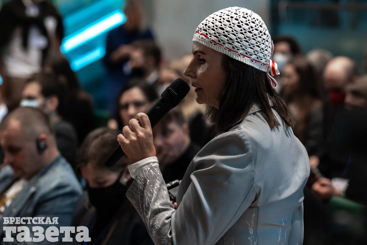 Участники форума – белорусские бизнесмены, вынужденные покинуть страну, спасаясь от давления и репрессий со стороны правящего политического режима. «Эти люди знают себе цену», – это о них и о тех, кто продолжает работать в Беларуси, говорила Светлана Тихановская в своем видеообращении к собравшимся в зале Варшавской биржи. Она говорила на английском языке.