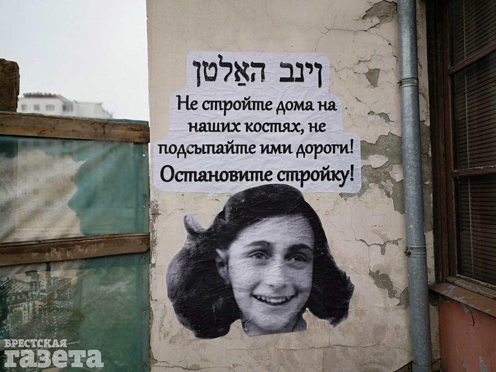 Граффити с еврейской девочкой и надписью корреспонденты «БГ» обнаружили днем 24 февраля рядом с забором, которым огорожена строительная площадка элитного квартала.