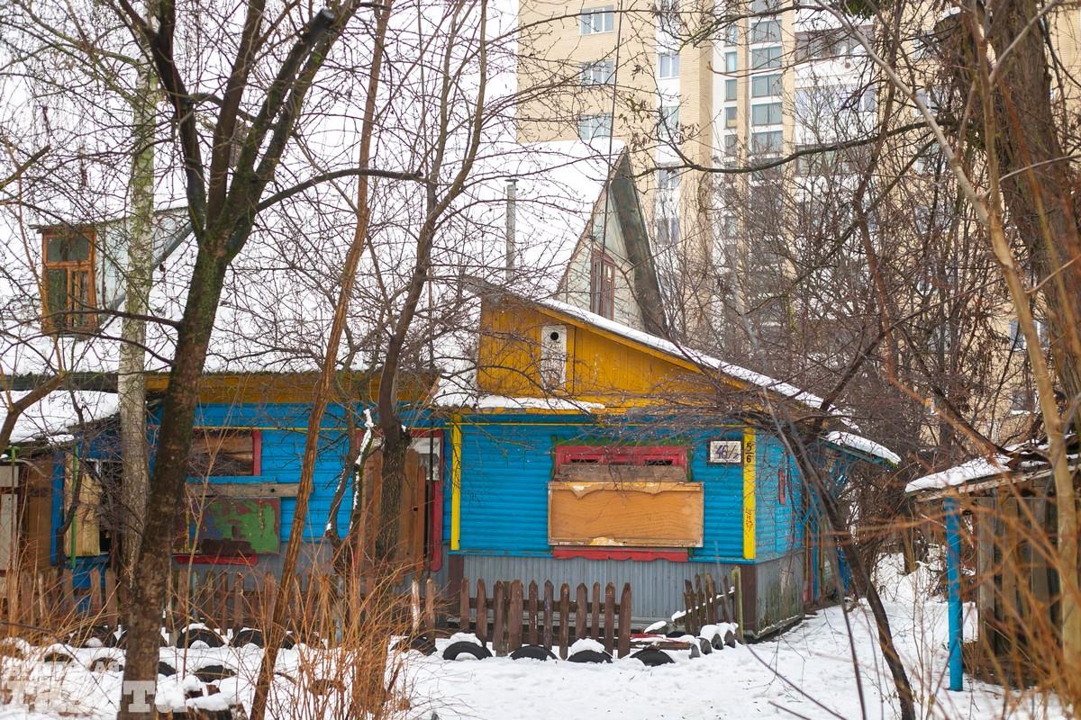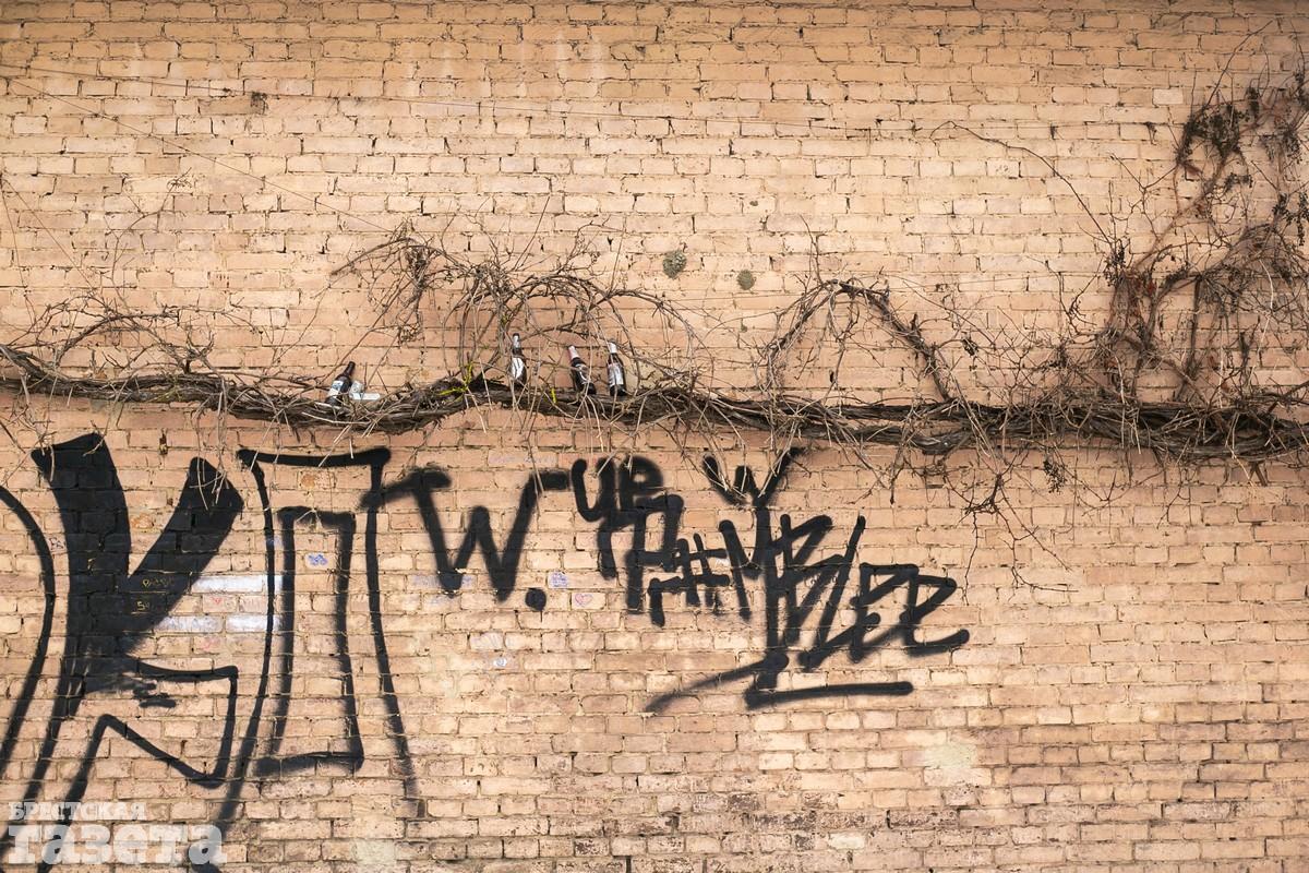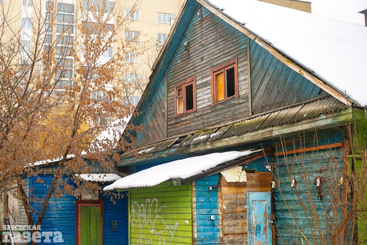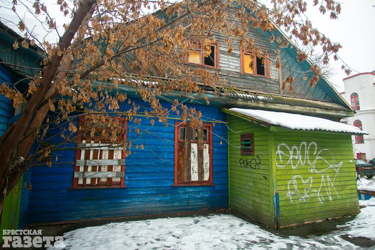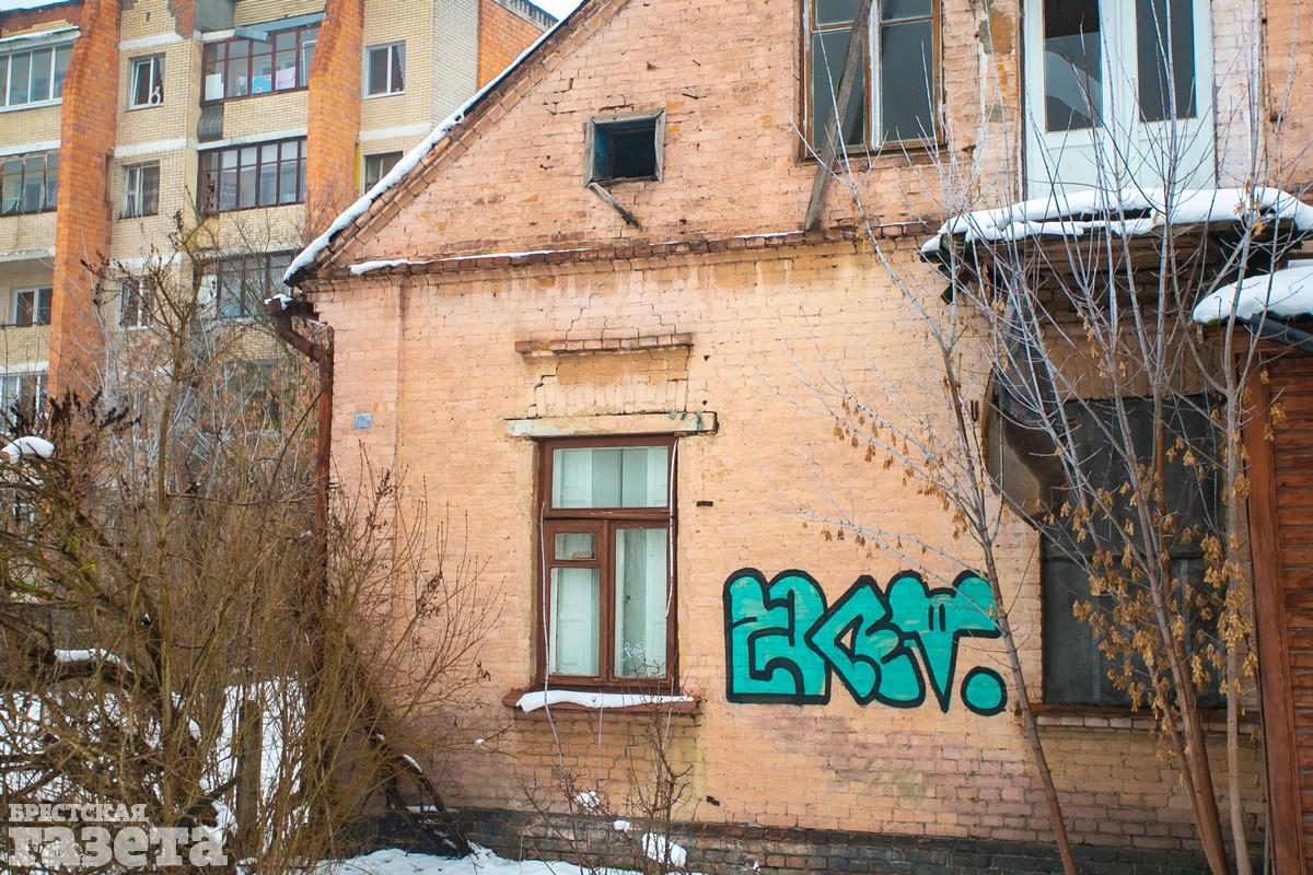 Кроме этой «настенной живописи» во дворе есть немало чего интересного. Предназначенные под снос хоть и ветхие и запущенные, но яркие домики, а также двухэтажные кирпичные гаражи, которых в городе становится все меньше.