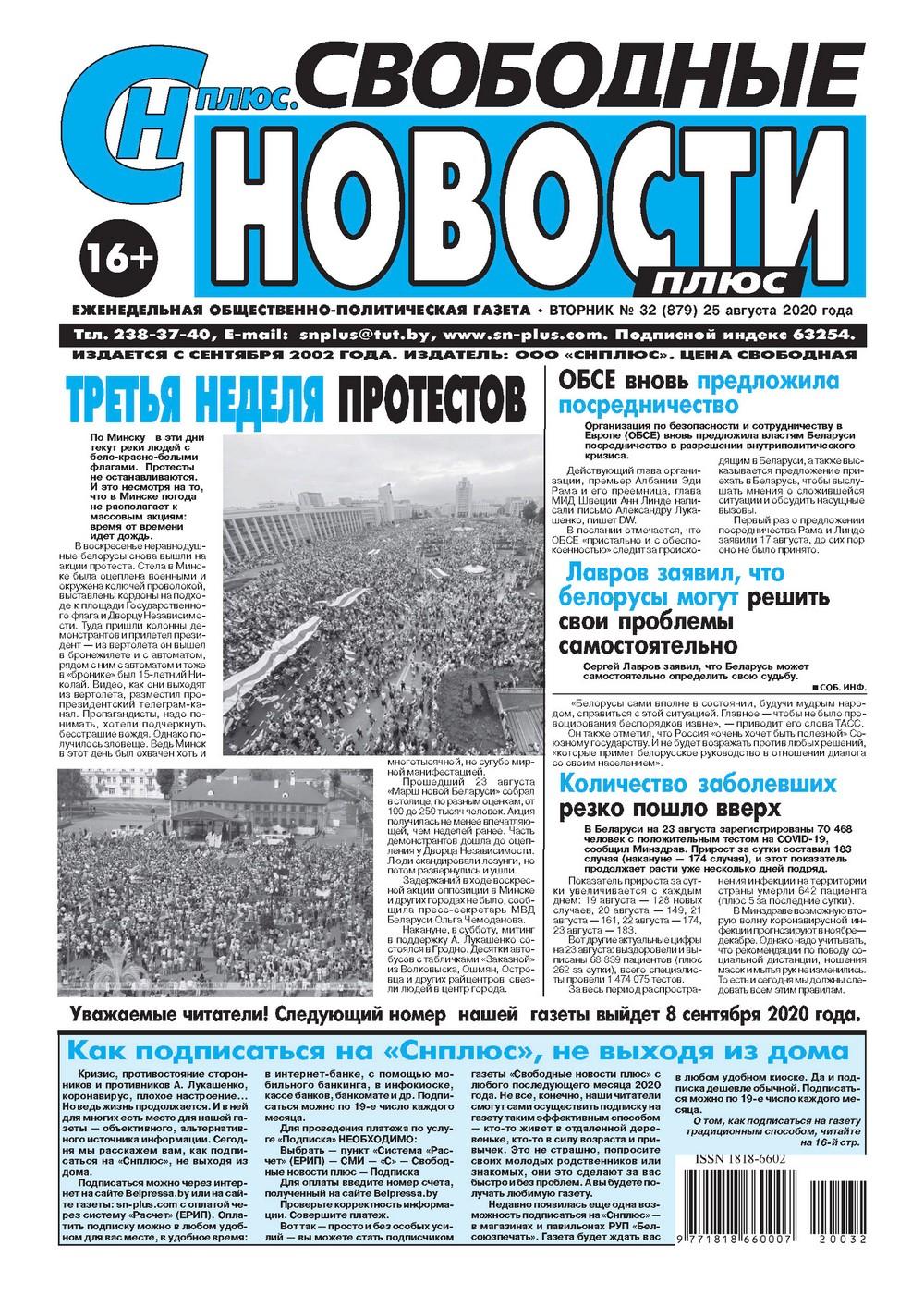25 августа также не вышел номер еженедельной газеты «Свободные новости плюс».
