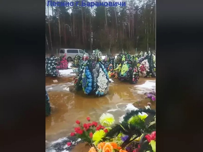 Житель Барановичей выложил в TikTok два видео с городского кладбища в деревне Лесино. На них видно, в какое грязное месиво превратилось кладбище из-за оттепели и ненастной погоды. Эти видео набрали уже больше 370 тысяч просмотров, а пользователи социальной сети активно обсуждают его и отмечают, что их «больше поражает количество свежих могил, а не грязь».