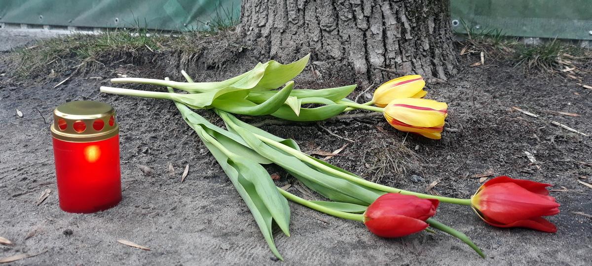 По его словам, цветы и лампадки еще вчера вечером перенесли к памятнику жертвам Брестского гетто. Где находятся фотографии, он не знает.
