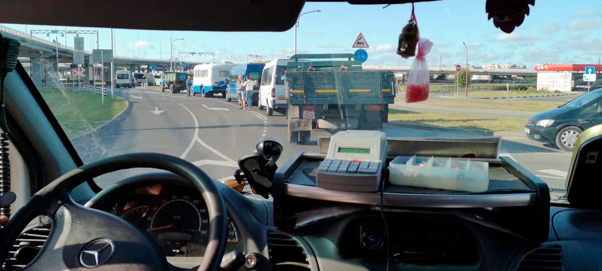 «Мост открыли, а маршруты общественному транспорту не изменили. Стоим на переезде с Дубровки в город», — написал нам утром 10 сентября читатель и в подтверждение своих слов сбросил несколько фото из маршрутки, которая стоит в пробке в районе Западного обхода.