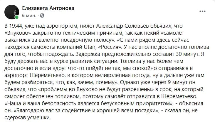20.00 — Все больше говорят о том, что самолет хотят посадить на военный аэродром Чкаловский. Во Внуково народ скандирует «Самолет во Внуково».