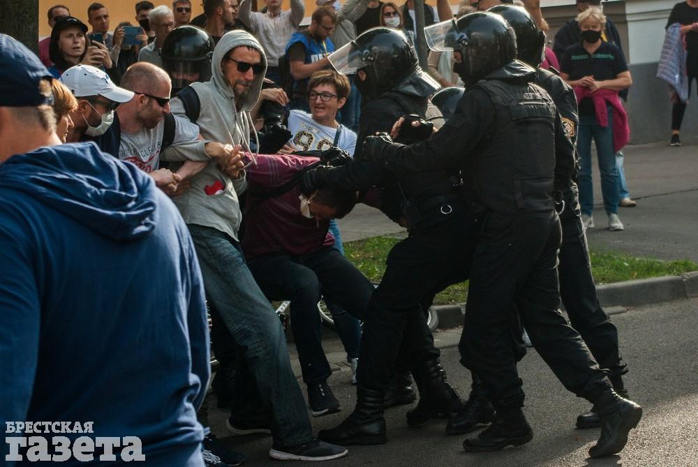 Очередная акция протеста, которая получила название Марш справедливости, в Бресте не обошлась без «хапунов». Сколько людей задержали силовики, официально пока неизвестно. Правозащитники опубликовали список задержанных на акциях протеста 20 сентября по всей Беларуси. На 20.00 в нем 133 фамилии, в том числе 6 людей из Бреста. Отмечается, что один брестчанин был сильно избит. Список обновляется и дополняется.