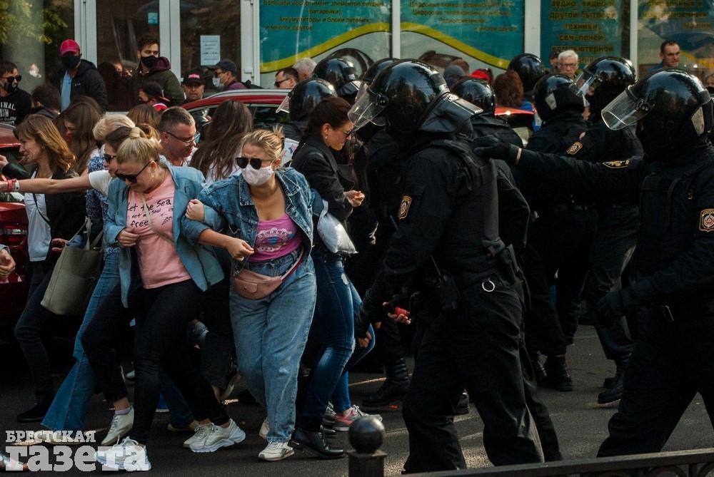 В Бресте 20 сентября жестко задерживали вышедших на улицы мирно протестовать против действующей власти брестчан. Под раздачу попали и женщины, и мужчины. Люди пытались отбиться, женщины не давали выдернуть мужчин из сцепки.