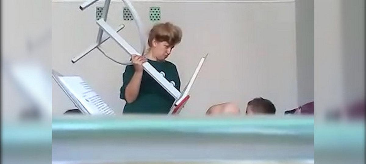 На записи видно и слышно, как женщина занесла над головой ученика парту, крича при этом: «Тресну, а потом посмотрим! Я пойду в тюрьму, а тебе п***ц будет!»