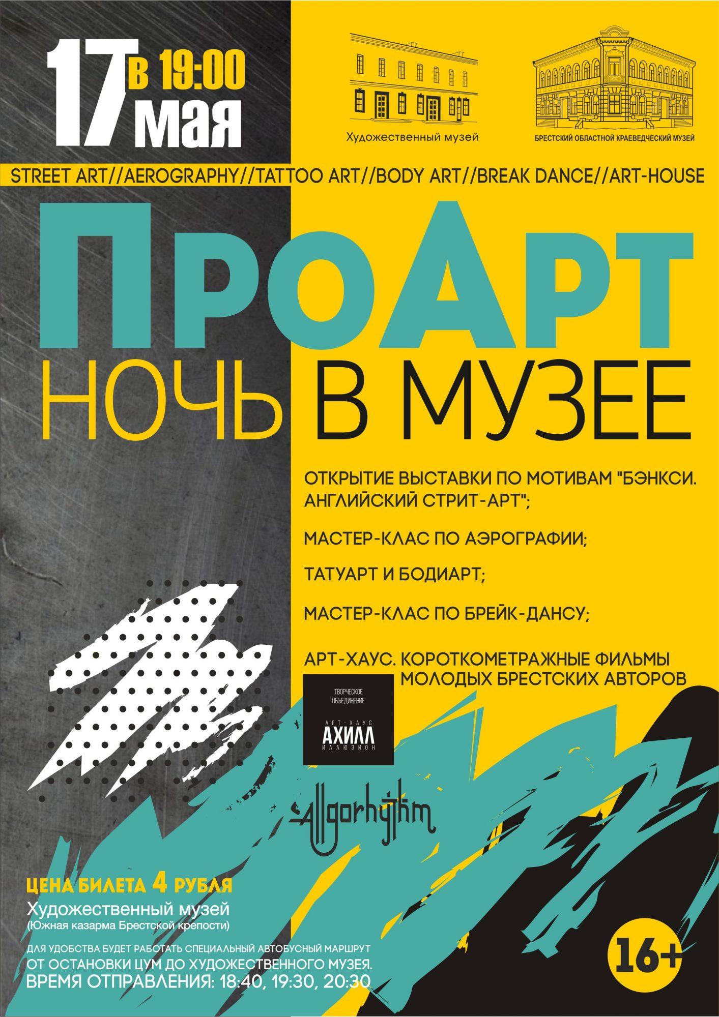 В этот вечер с 19.00 до 23.00 музей превратится в пространство современного искусства. Посетители смогут увидеть выставку работ современных художников – участников нашумевшего проекта по мотивам «Бэнкси. Английский стрит-арт».