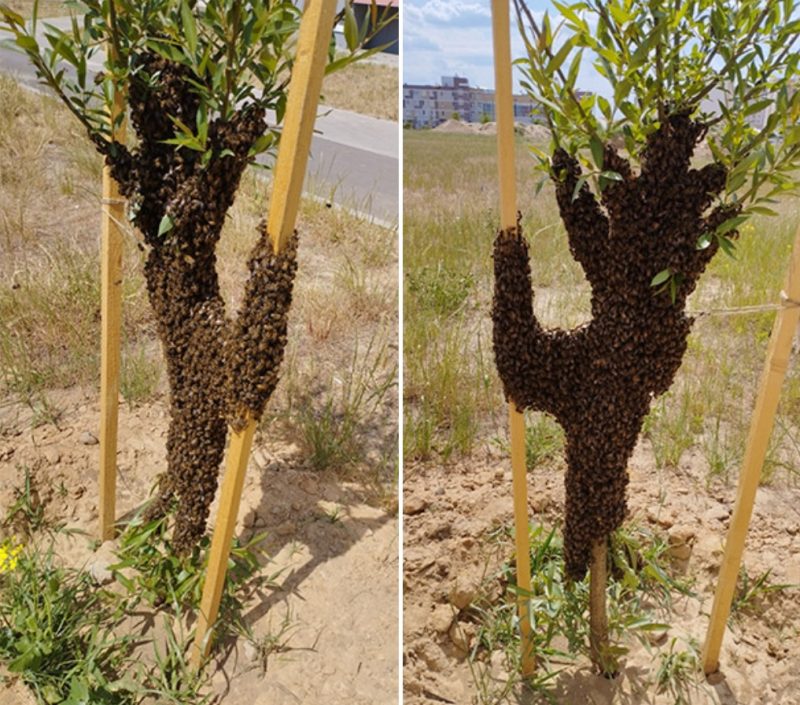 Мужчина подошел ближе, чтобы рассмотреть, и понял: дерево плотно обсел целый рой пчел. Из-за этого шаровидная ива стала больше похожа на пальму.