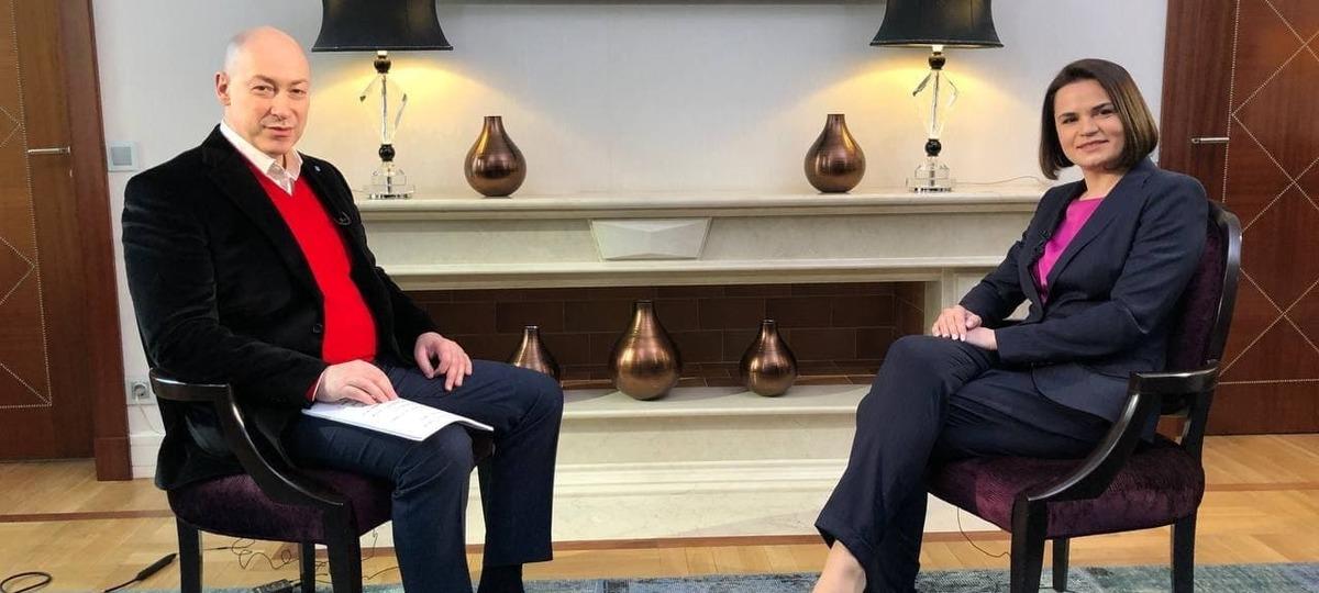 Лидер белорусской оппозиции Светлана Тихановская дала интервью украинскому журналисту Дмитрию Гордону. Интервью записано в Литве, где теперь живет Светлана после отъезда из Беларуси. Оно вышло на ютуб-канале Дмитрия Гордона 23 февраля. Несколько вопросов касались ее мужа Сергея Тихановского. Светлана рассказала, что если бы ей поставили условие «Сергей выходит, а остальные сидят», то она бы не согласилась, потому что они так же невиновны, как и Сергей.