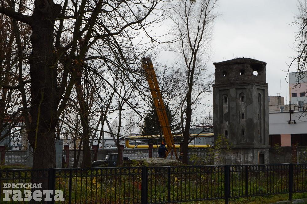 Дубль два в плане возрождения Городского сада в городе над Бугом решили, видимо, начать с реконструкции водонапорной башни, которая находится рядом с ограждением, разделяющим парковую зону и территорию Брестской ТЭЦ.