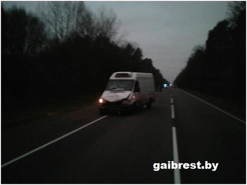 ДТП в Лунинецком районе произошло 7 ноября примерно в 05.30. По предварительной информации ГАИ, 35-летний житель Иваново за рулем «Мерседеса Спринтер 308» двигался по автодороге М10 Кобрин — Гомель — граница РФ в сторону Гомеля. На 366-м км трассы он сбил 38-летнего жителя Бобруйска, который шел по проезжей части во встречном авто направлении.