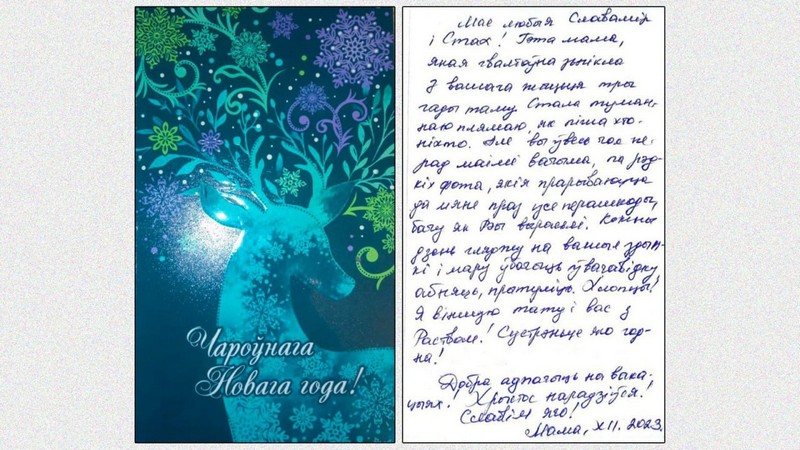 «Мае любыя Славамір і Стах! Гэта мама, якая гвалтоўна зьнікла з вашага жыцьця тры гады таму. Стала туманнаю плямаю, як піша хто-ніхто. Але вы ўвесь час перад маімі вачыма, па рэдкіх фота, якія прарываюцца да мяне праз усе перашкоды. Бачу, як вы выраслі. Кожны дзень гляджу на вашыя здымкі і мару ўбачыць увачавідку, абняць, прытуліць. Хлопцы! Я віншую тату і вас з Раством! Сустрэньце яго годна! Добра адпачыць на вакацыях! Хрыстос нарадзіўся! Славім яго!» — сказано в письме.