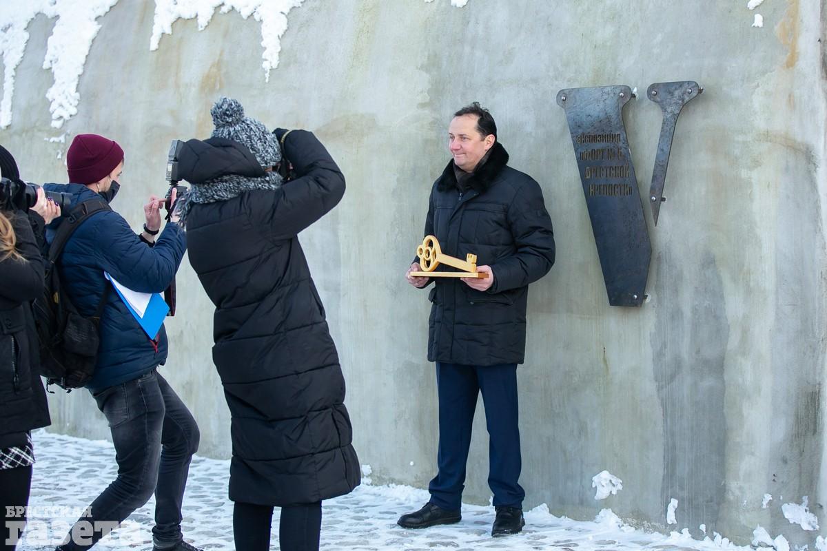 Крещенский мороз не помешал торжественной церемонии с участием министра культуры РБ Анатолия Маркевича и руководства города. Экспозиция создана в рамках проекта Союзного государства «Капитальный ремонт, реставрация и музеефикация сооружений Брестской крепости в мемориальном комплексе «Брестская крепость-герой».