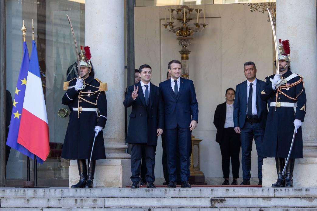 Президенты Франции и Украины Эммануэль Макрон и Владимир Зеленский