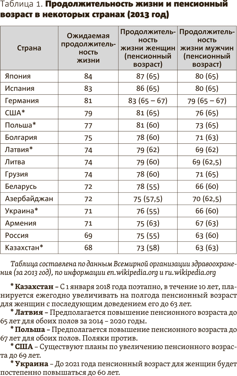 * Латвия — Предполагается повышение пенсионного возраста до 65 лет для обоих полов за 2014 — 2020 годы.