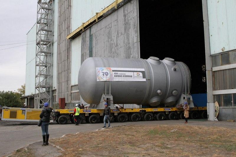 «На высоте около 4 метров (при длине изделия 11 метров) возникла неисправность подъемного крана, вследствие чего корпус оставался в подвешенном состоянии более получаса. Все это время перекос постепенно увеличивался и в результате привел к тому, что корпус реактора проскользнул по стропам и повис диагонально, соприкоснувшись с землей», — сообщил Локшин.