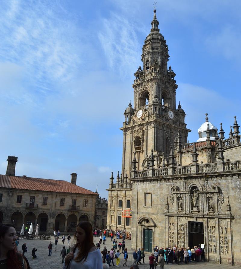 — В последний день нашего путешествия, подъезжая к городу Сантьяго-де-Компостела, я умудрилась пропустить нужный поворот с трассы и потеряла свою группу. Так что в Сантьяго я въехала сама, без карты, без навигатора, не зная ни испанского, ни английского. Благодаря двум словам, «экскьюзми» и «катедраль», мне удалось найтись. Поднявшись наверх, мы очутились в средневековом городе. Огромная квадратная площадь перед собором Святого Иакова была заполнена людьми. Сотни, а может, и тысячи паломников сидели, лежали, стояли на каменных плитах площади. К боковым дверям собора вела очередь паломников. Внутри собора в середине алтаря установлена скульптура Святого Иакова. Под алтарем в серебряной раке находится самое ценное — мощи Святого Якова. На следующий день мы побывали на торжественном богослужении для пилигримов в кафедральном соборе Святого Иакова.