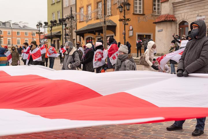 Акция солидарности с белорусами проходит в Варшаве.