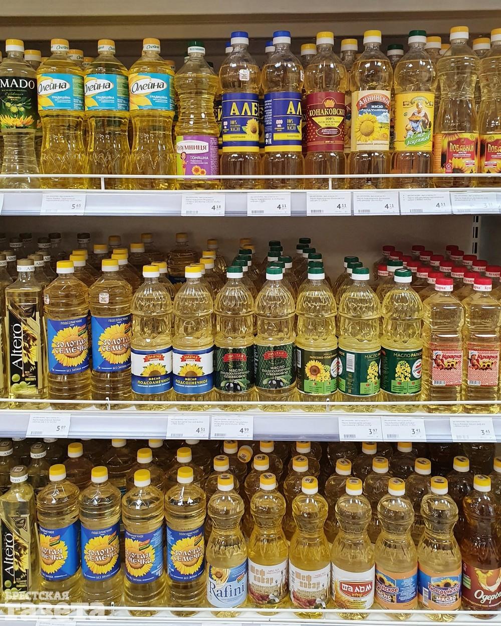 Стоит отметить, что цены на растительное масло в нашей стране росли на протяжении всего года. Так, например, в июле 2020-го литровая бутылка рафинированного подсолнечного масла популярной торговой марки в одной из торговых сетей Бреста стоило 2,79 рубля. Во второй половине марта 2021-го (спустя восемь месяцев) его же еще можно было найти в дискаунтерах города за 3,69 рубля. Теперь оно стоит в торговых сетях города дороже 4,5 рублей. По крайней мере в тех, которые 8 апреля посетила корреспондент «БГ».
