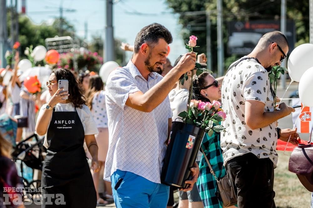 Как и ранее в руках у многих цветы, белые или красные воздушные шары. Проезжающие рядом машины им традиционно сигналили, тем самым выражая свою солидарность.