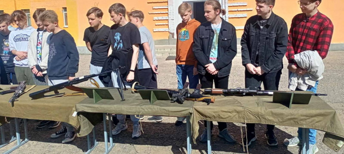 Судя по лицам ребят, они были очень «рады» тому, что вместо условной игры в футбол им пришлось заниматься военной подготовкой – разбирать и собирать автоматы.
