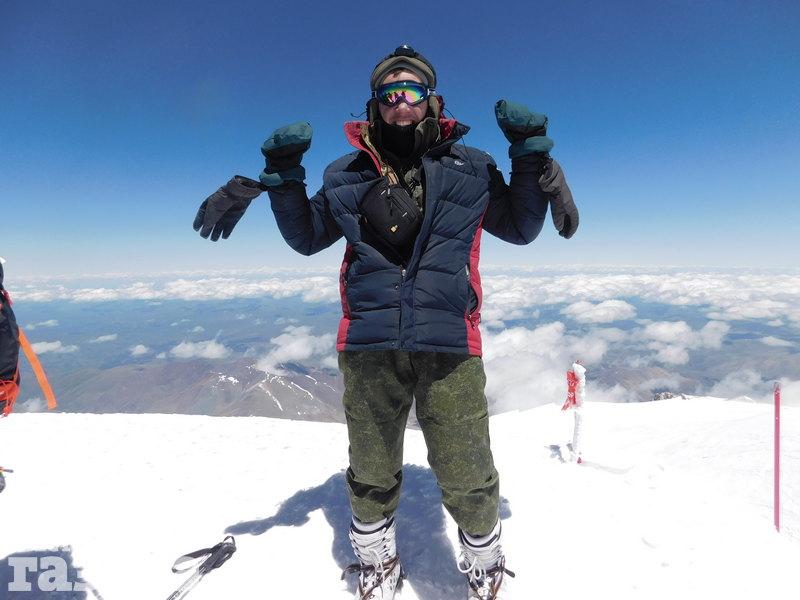 Когда Дима выезжал из Бреста, его рюкзак весил более 20 килограммов. При подъеме на Эльбрус он полегчал примерно наполовину: многое из содержимого рюкзака он надел на себя, а что-то оставил с другом в базовом лагере.