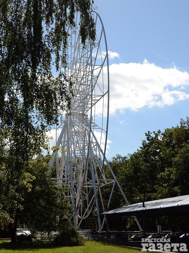 Его предшественник был ниже — 28 метров, сообщается на сайте Брестского горисполкома. Это второе по высоте колесо обозрения в стране. Пальма первенства у столичного «коллеги» — 54 метра.