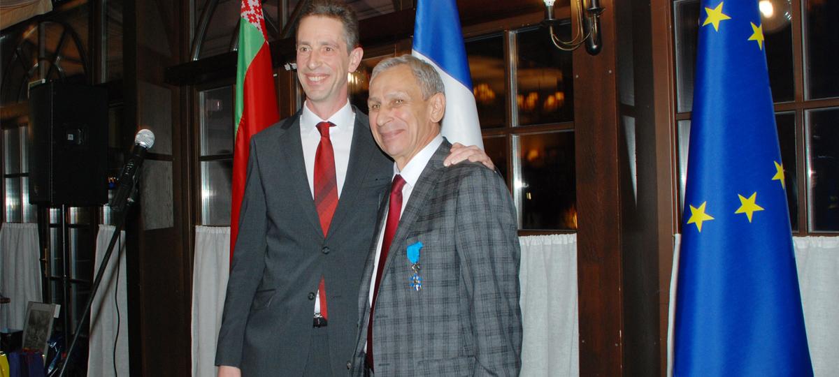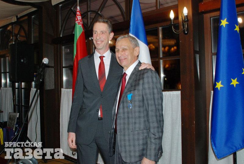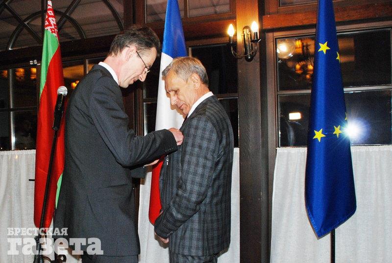 Государственную награду Французской Республики руководитель консульского агентства в Бресте Леонид Стаецкий получил из рук чрезвычайного и полномочного посла Франции в Беларуси Дидье Канесса.