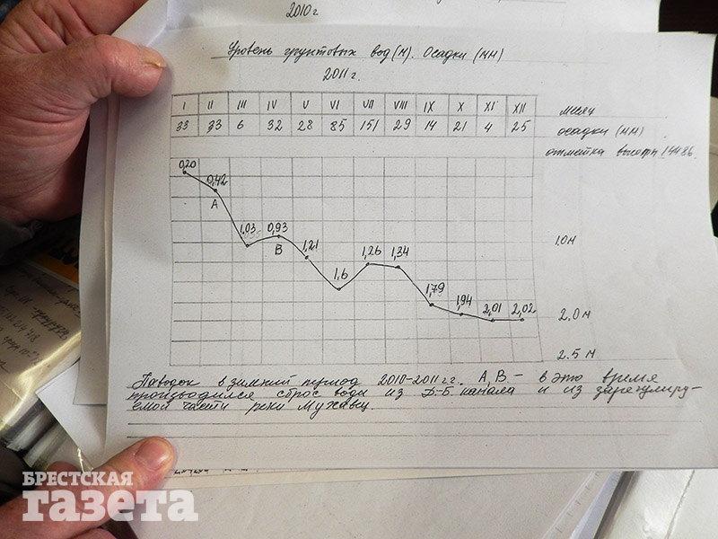 По его словам, подтопление постоянное, земли пяти хозяйств страдают из-за него. Но райисполком не может оказать влияние на предприятие республиканского значения. «Когда не было их станции, какой уровень воды был? В сапогах переходили Днепро-Бугский канал, а сегодня он держится выше двух метров, — рассуждает зампред. — Ну, а вторая причина подтоплений — это то, что везде сейчас уровень грунтовых вод выше обычного. И там, где водный путь, и где его нет. Дивин, к примеру, вообще к Днепро-Бугскому каналу никакого отношения не имеет, а у людей в подвалах вода стоит с августа прошлого года. Это не только в Кобрине, но и во всем районе и за его пределами».