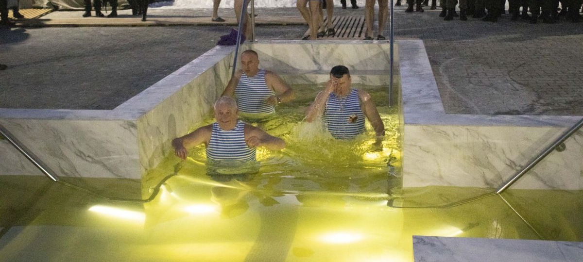 68‑летний председатель Брестского облисполкома Петр Пархомчик отметил Крещение вместе с десантниками 38‑й отдельной гвардейской десантно-штурмовой бригады. Окунаясь в купели с подсветкой, он забыл в какую сторону креститься. Видео с этим моментом набирают просмотры в соцсетях. Некоторые комментаторы поддерживают Пархомчика, а другие называют сам процесс показухой.