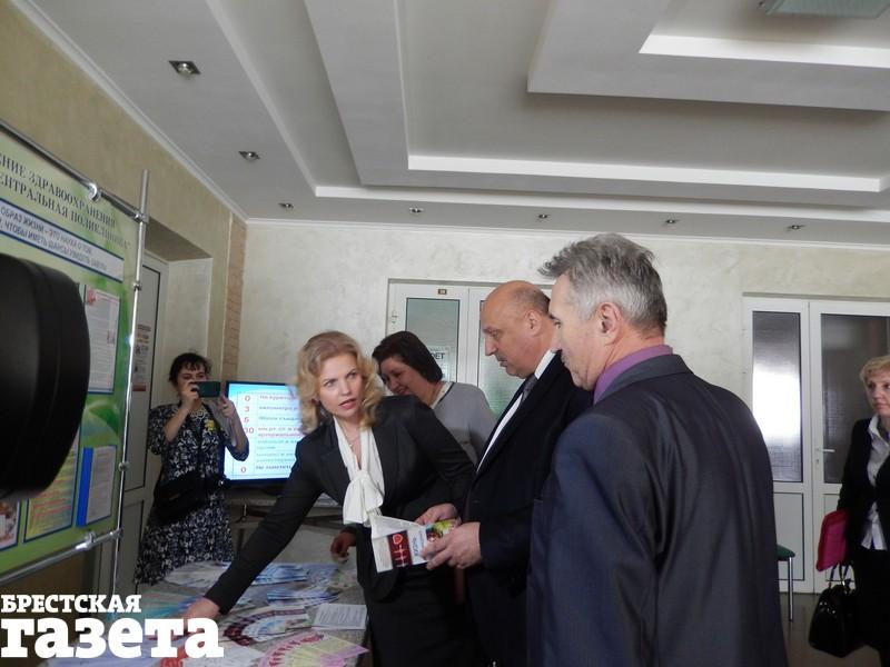 Заместитель председателя облисполкома Олег Величко и главврач областного кардиологического диспансера Наталья Побиванцева в здравпункте «Брестгазоаппарата».