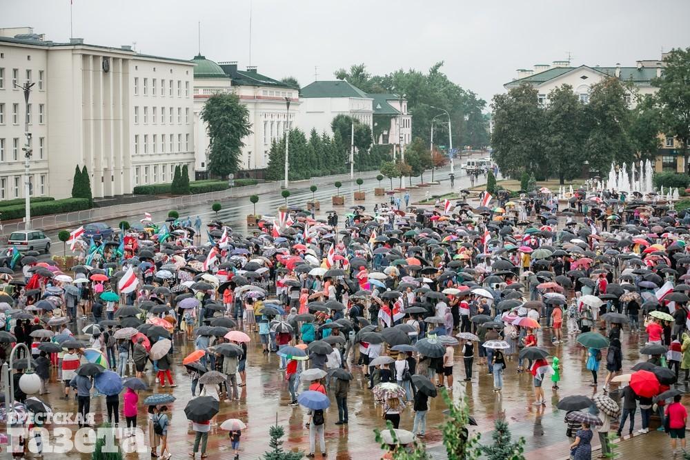 В воскресенье 23 августа в Бресте вновь прошла мирная акция протеста, эпицентром которой стала площадь Ленина. Люди пришли на главную площадь города несмотря на дождь и в очередной раз выразили свое несогласие с результатами президентских выборов.