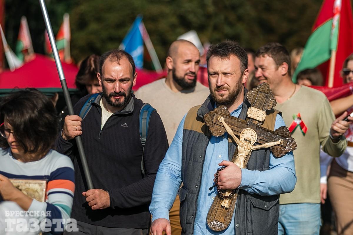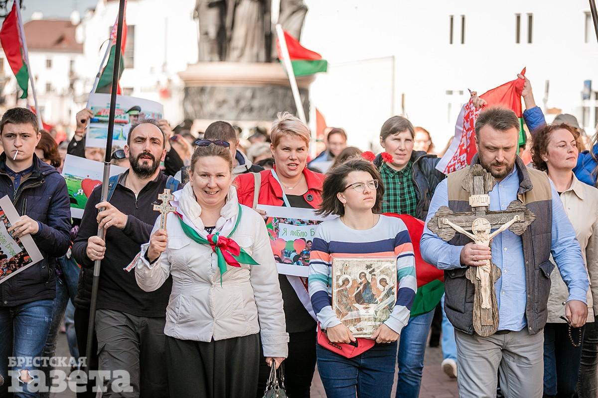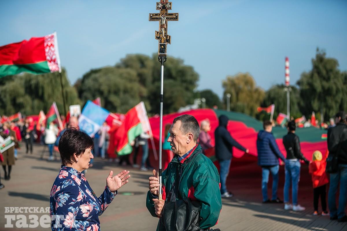 С флагом «За батьку» и «наказом вернуть Отечество». Как в Бресте проходило шествие «За мирную Беларусь» (фоторепортаж)