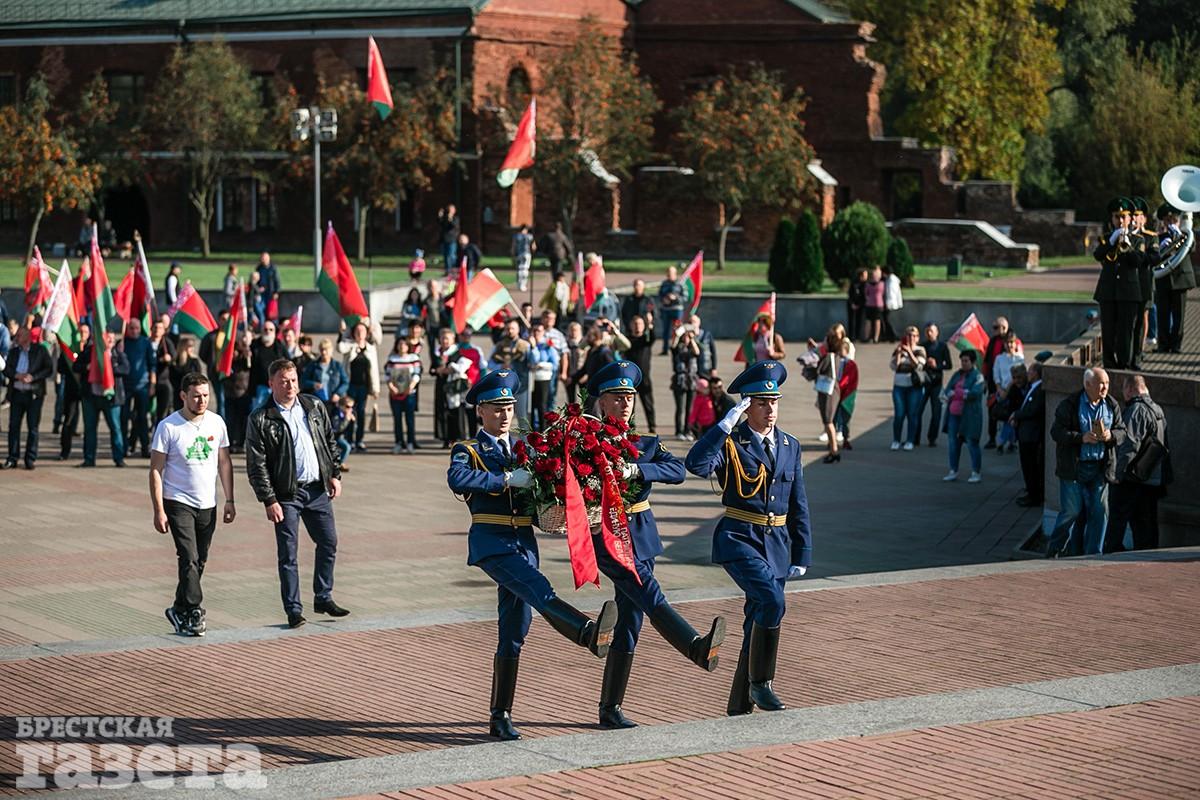 Участники марша собрались на площади Свободы, прошлись к памятнику 1000-летия, далее по улице Советской к ЦУМу, оттуда — к Симеоновскому собору. Конечной точкой стала Брестская крепость, где возложили цветы.