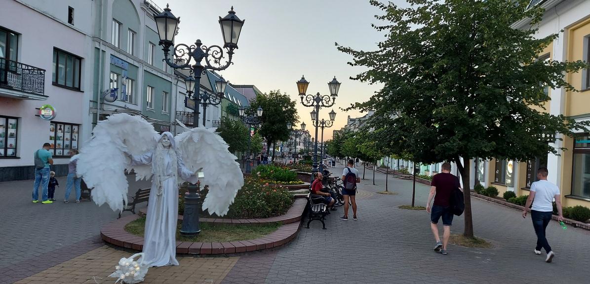 Гораздо оживленнее на пешеходной улице Советской. Но, конечно же, не так, как это бывало до 9 августа. Работают рестораны и кафе. Люди сидят на открытых террасах, кто-то просто прогуливается.