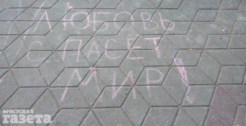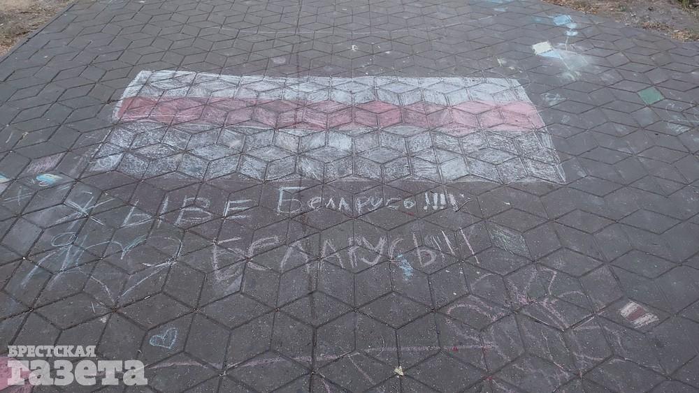 Вечером на этом месте чисто. Как будто и не было здесь никаких протестующих. Только на плитке остался красивый нарисованный флаг со словами «Жыве Беларусь». А рядом надпись о вечной истине.