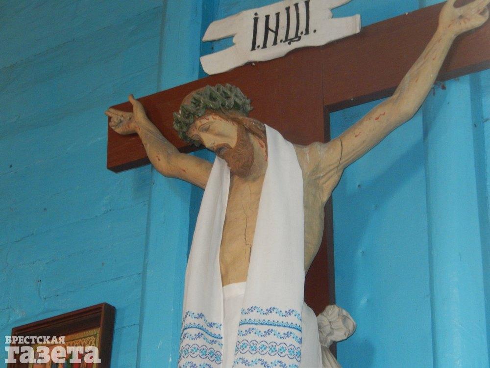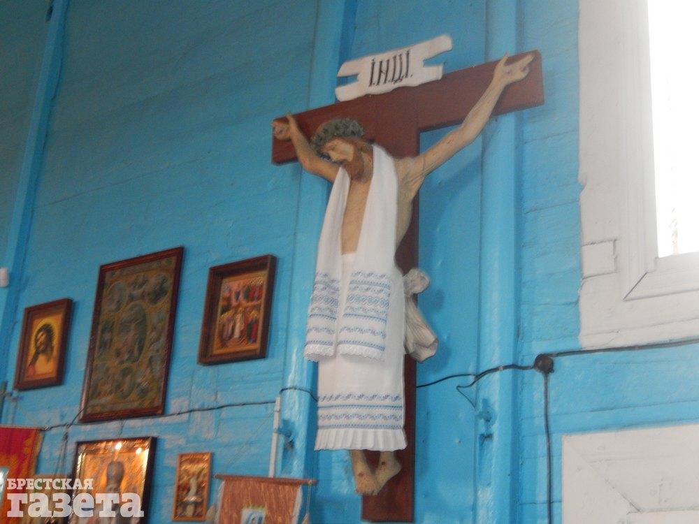 «Один умник нашелся, хотел снять со стены храма католическое распятие, — вспоминает староста дело давно минувших дней. — Залез на табуретку, схватился рукой за распятие, а опора рухнула у него из-под ног. Он упал, сломал кости таза и так потом и не вылечился, остался инвалидом. Когда падал, за руку распятия уцепился и сломал ее, трещина видна. С той поры больше никто не пытался это распятие из церкви убрать».