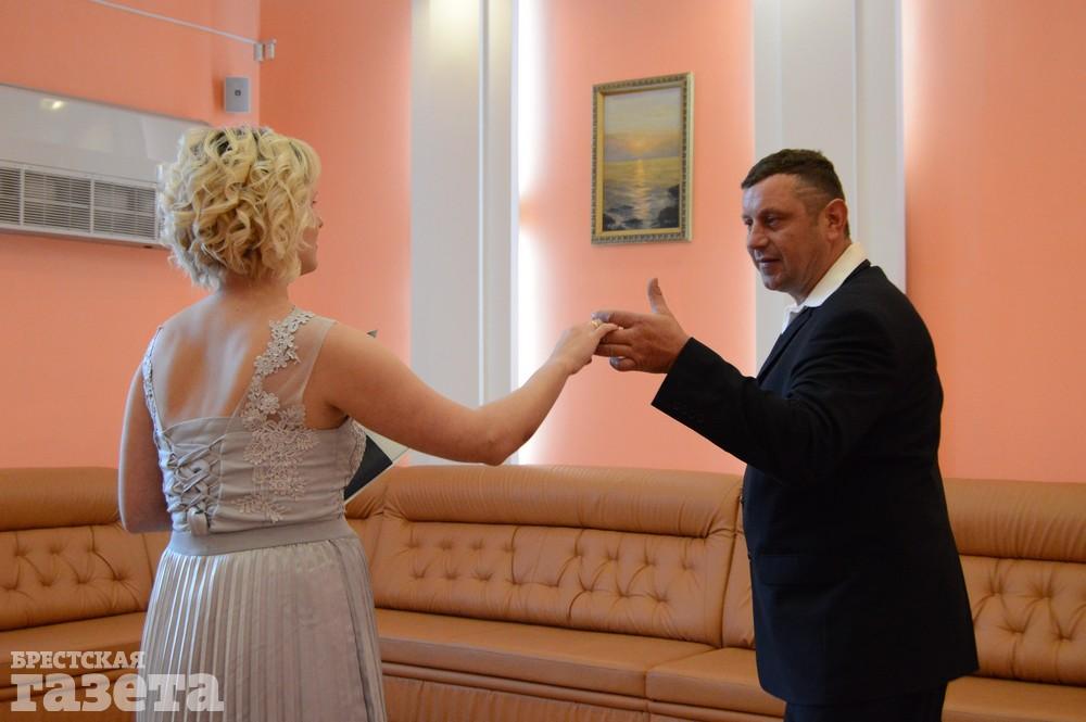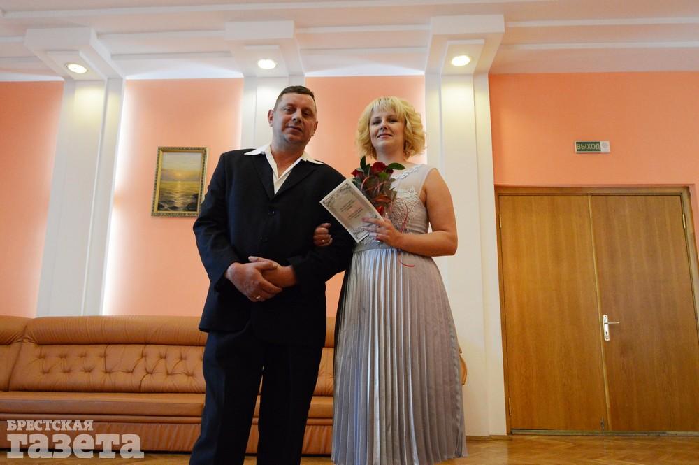 Сергей Панков и Виктория Рожинская расписались 4 октября. Невеста сейчас не работает, потому как находится в отпуске по уходу за ребенком: у пары два месяца назад родилась дочь. Жених — водитель городского маршрутного такси. Молодожены даже в загс приехали на «рабочей лошадке» Сергея — маршрутке под №5, эффектно припарковав ее на стоянке у брестского «дворца бракосочетаний».