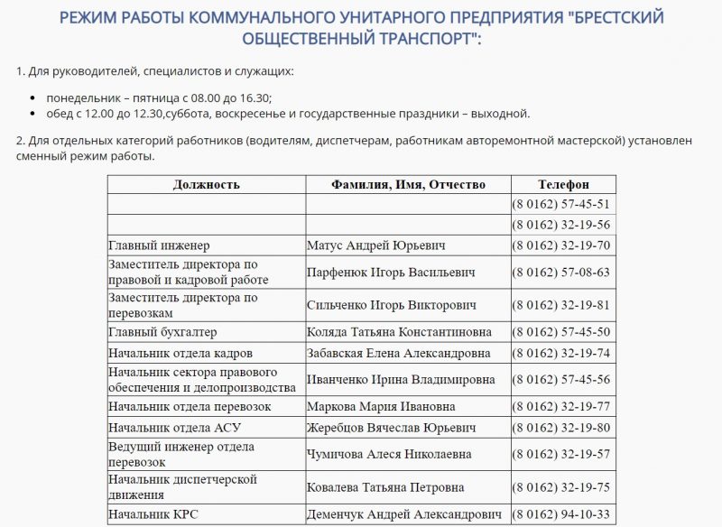 Примечательно, что власти до сих пор не нашли замену уволенным Царуку и Забавскому. На сайте «Брестского общественного транспорта» есть таблица с контактами руководства предприятия. И две верхние строчки там пустые.