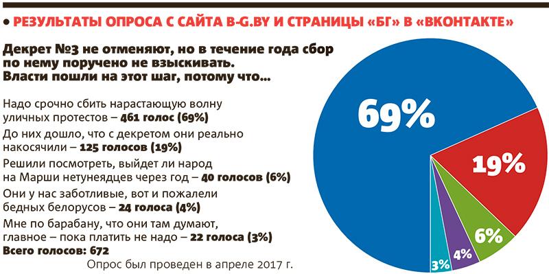Пришла бы осень, возможно, дотерпели бы белорусы и до следующей весны, но вероятность новых народных волнений оставалась высокой. После принятия решения о возврате тунеядцам денег, безусловно, недовольных станет меньше. По сути, таким образом власти дали декрету №3 задний ход. Но не отменили, не признали, что это была ошибка. Решили обойтись откупными, то бишь вернуть деньги тунеядцам, ставшим на путь исправления.