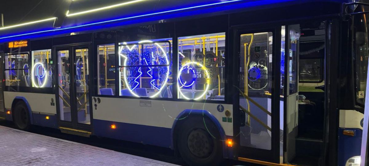 Один из самых обсуждаемых автобусов украшен водителем и его друзьями. Это не служебный приказ, а личное желание создать праздник. Автобус ездит по разным маршрутам, украшен изнутри, но огни хорошо видны и снаружи.